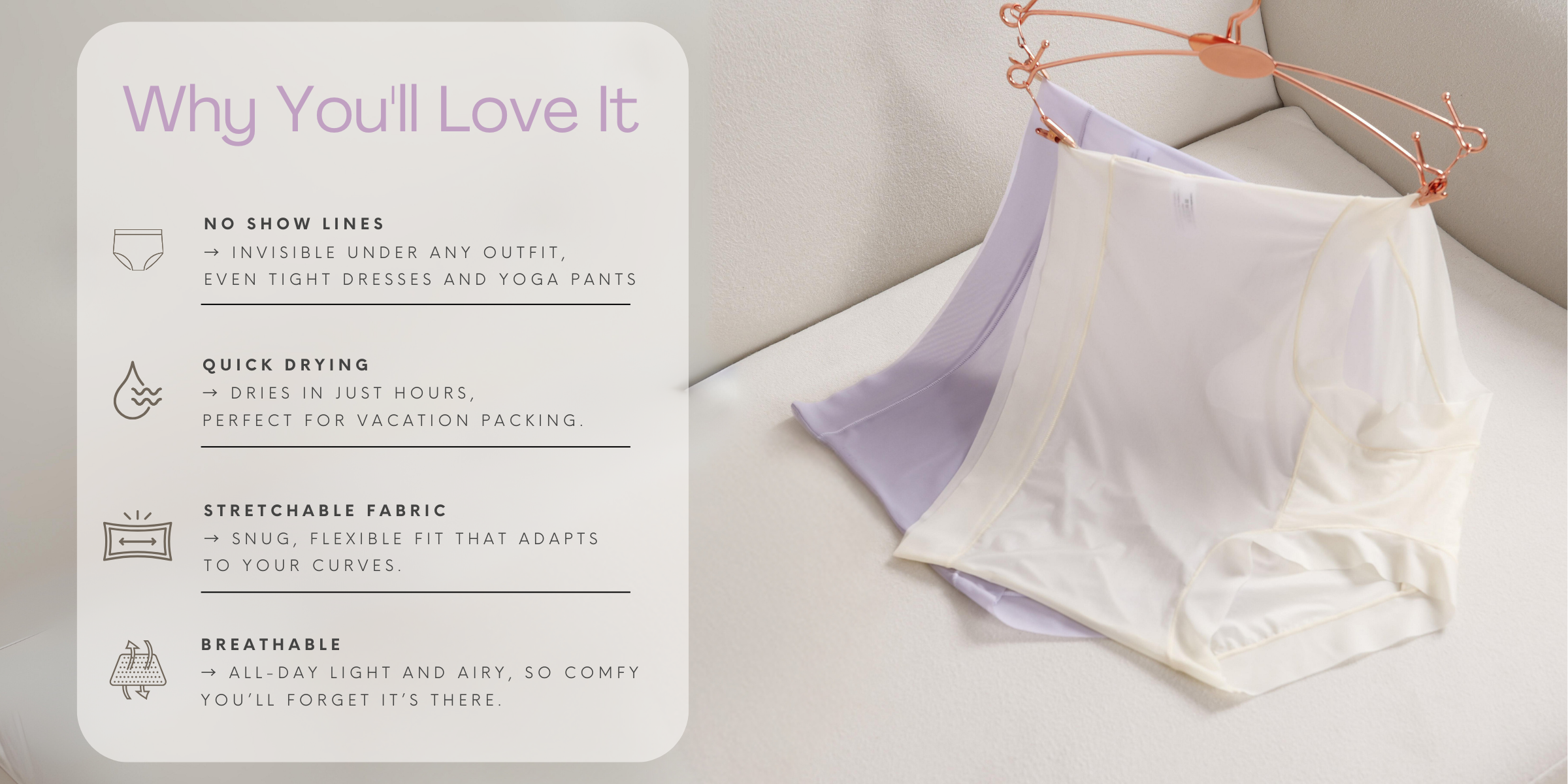 Breathable. Stretchable. Quick-dry. No show lines.